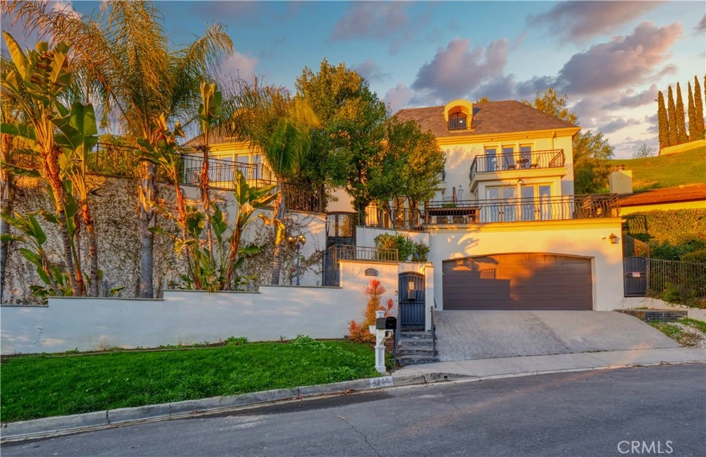 Priced to Sell! This spectacular, one-of-a-kind estate is nestled on the highly coveted Galendo Street in Woodland Hills–South and showcases breathtaking views that are truly without equal. As you enter through the private security gate, the estate’s stunning setting will immediately take your breath away. From the many expansive viewing decks and balconies, enjoy panoramic vistas of the rolling hills—perfect for watching both sunrise and sunset in a tranquil, unforgettable atmosphere. Boasting 5,481 square feet of meticulously upgraded living space, this estate blends architectural elegance with luxury finishes at every turn. Just moments from the community’s exceptional amenities, the home offers an unrivaled combination of location, style, and spectacular views. Step through custom French doors into a beautiful foyer that sets the tone for the rest of the home. The main floor features a spacious living room with elegant fireplace, formal dining room, inviting family room with a cozy fireplace, and a chef’s gourmet kitchen complete with an oversized pantry, central island, perfect for entertaining in style. On the lower level, adjacent to the oversized garage, you’ll find a generous laundry room and a dedicated wine cellar. Take the custom elevator to the bedroom level, where five generously sized bedrooms await, including a luxurious primary suite thoughtfully positioned for privacy and comfort. Each suite offers its own distinctive charm and custom design. The top floor provides the ideal space for hosting guests in a private suite with a full bathroom—or it can easily serve as a home office or creative retreat. Outdoors, the entertainer’s yard is a true highlight, with an inviting courtyard, multiple decks for enjoying the views, al fresco dining areas, and charming sitting nooks throughout. Extending from Galendo Street to Arcos Drive, the property includes a second security-gated entrance that leads directly to the top-floor guest unit, offering ultimate convenience and privacy. This exceptional estate is the epitome of stylish comfort in a prime, private location—with stunning views that elevate everyday living. A rare opportunity to own a truly remarkable home!