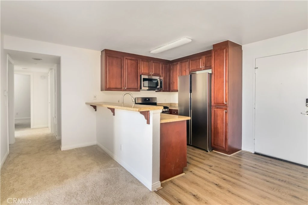 Enjoy resort-style living in this rare 3-bedroom, 2-bath penthouse at the MET in Woodland Hills. This highly sought-after single-level, top-floor condo is tucked away in a quiet setting with serene courtyard and treetop views. The light-filled living room features soaring vaulted ceilings, a cozy fireplace, and a private balcony. The kitchen boasts new appliances, and the spacious primary suite includes mirrored closets. Additional highlights include abundant storage, in-unit laundry, and two tandem covered garage parking spaces. Located in a 24-hour guard-gated community offering four pools and spas, multiple tennis courts, a state-of-the-art fitness center, and 24/7 security patrols. Ideally situated near freeways, public transportation, shopping, dining, movie theaters, parks, and The Village at Westfield Mall.