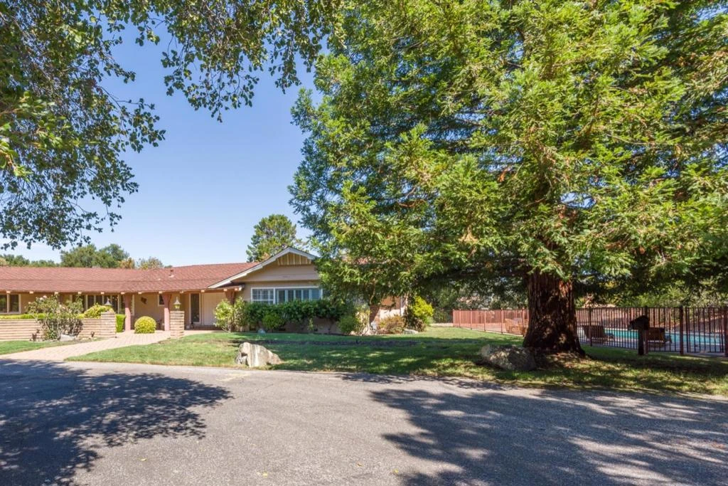 Opportunity abounds on over one acre just a mile from town center and with access to acclaimed Woodside Elementary School. Move in and enjoy, renovate, or build new. The sprawling mid-century ranch home is bright and light and has been freshly updated with all new paint while preserving its vintage charm in the kitchen and bathrooms. There are 4 bedrooms and 3 baths plus a 1-bedroom, 1-bath ADU with full kitchen for guest accommodations, rental potential, or a comfortable space while designing a future estate. Vast level grounds, separately fenced pool, and equestrian zoning.