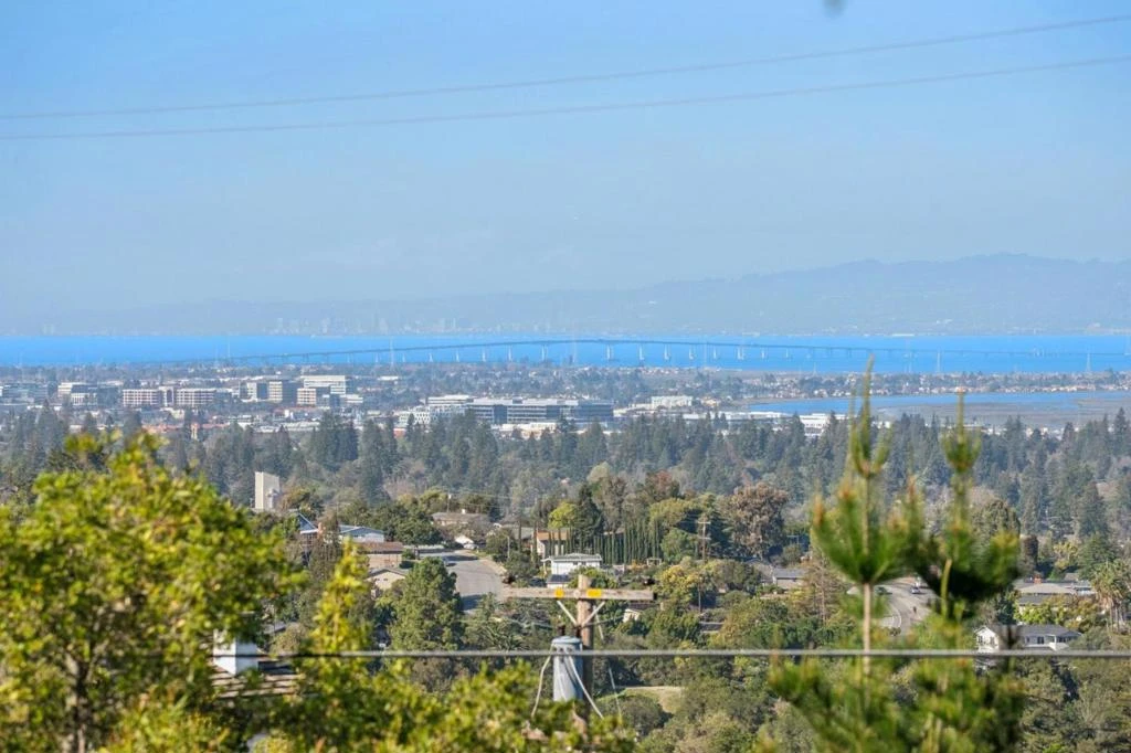 Significant Mid-Century Modern Architecture with Bay Views. Sweeping San Francisco Bay views take center stage at this exceptional Woodside Hills property with fresh updates throughout. Spanning one acre, the elevated corner lot is positioned to capture the expansive views while also providing generous level areas for outdoor living. Enhancing the setting is the gentle sound of a meandering creek and strolling paths that create a distinctly parklike ambiance. Fresh interior updates include new paint, refinished hardwood floors, and new carpet, all complementing the living rooms signature vaulted ceiling, handcrafted with layered redwood cedar rising to a dramatic center peak. Multiple fireplaces add warmth and character, while glass doors open to several outdoor spaces oriented to enjoy the Bay views. The formal living room and dining room each have Bay views, plus there is a large open kitchen and family room for everyday gatherings. Four bedrooms, an office, and 3.5 baths are well arranged, featuring a main-level primary suite and a second suite comprising the entire lower-level with outside access and flexibility for future ADU conversion. An attached two-car garage and abundant off-street parking complete this inviting retreat with close-in convenience.