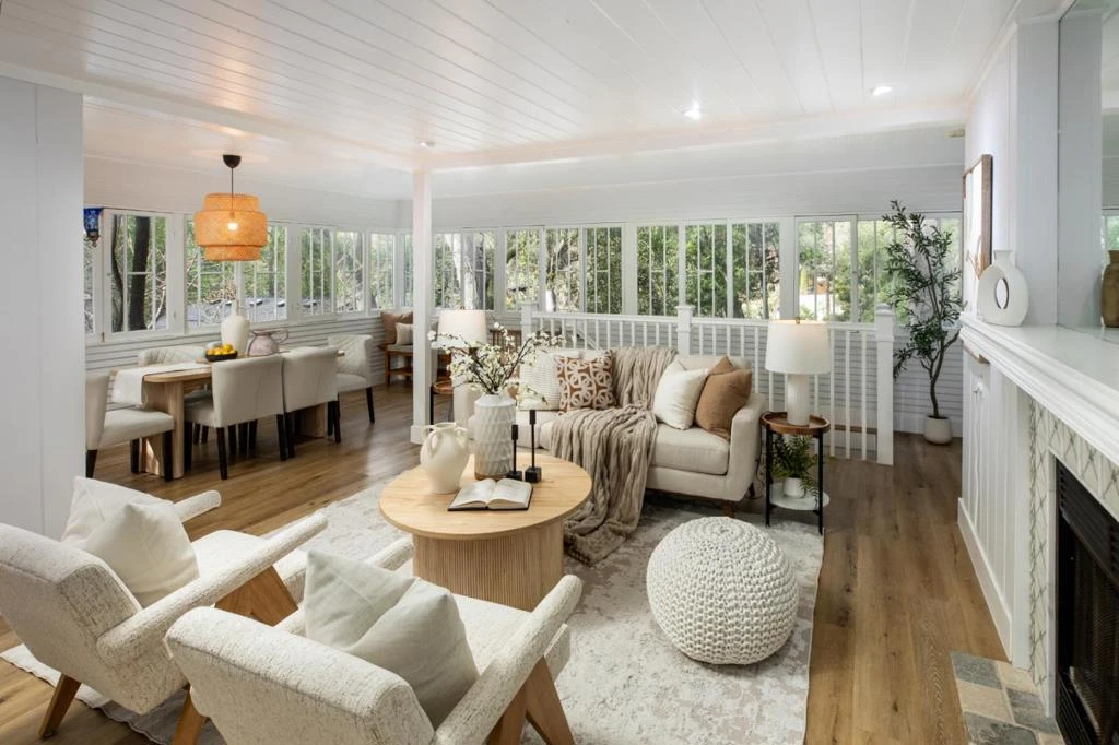 Discover a blend of charm and modern living in this beautifully updated Woodside home, nestled beneath a canopy of majestic oak trees. Originally built as a summer cottage in 1927, this 3-bedroom, 2-bathroom residence has been thoughtfully expanded and renovated while preserving its vintage character. The heart of the home features a recently remodeled kitchen designed for both everyday living and entertaining. Natural light pours through skylights and a large sliding door that opens to a private patio, seamlessly connecting indoor and outdoor spaces. The dining room showcases a wall of windows framing views of the lush yard and filtered sunlight through the surrounding oaks. A private primary retreat, completed in 2017 with foundation and seismic retrofitting, offers a peaceful sanctuary with luxurious appointments and imported stone floors. A standout feature is the fully equipped guest house with its own kitchen and full bathroom, perfect for extended family, guests, a home office, or rental income potential. Located in the desirable Woodside Glens neighborhood, this home offers exceptional proximity to downtown Woodside and Woodside Elementary School. Roberts Market, charming cafés, and local favorites are just a short stroll away.