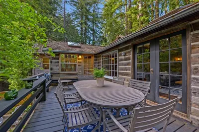 Welcome to this stunning Woodside residence, where modern elegance meets timeless charm. Built in 2010, this home combines stone, wood, and striking red accents to create a captivating exterior. Circular driveway beckons you towards the welcoming entryway. Step inside to discover a light-filled haven boasting 3 bedrooms and 2 baths. The airy sunroom immediately off the entry sets the tone for the bright and inviting atmosphere found throughout. Spacious kitchen, you'll be greeted by high ceilings and a magnificent chef's island complete with a gas cooktop and warming drawer - perfect for culinary enthusiasts. The sunlit eating area features custom built-in buffet cabinets offering ample storage for all your needs. The living room is a sanctuary of comfort, Nestled within is a cozy wood-burning stove. Step outside onto the deck or patio, where you can bask in the serene ambiance of the outdoors amidst mature shade trees. This outdoor space provides endless possibilities for entertaining. Retreat to the master bedroom, complete with its own ensuite bathroom and outdoor access via a light-filled French door. Whether relaxing indoors or enjoying the tranquility of the outdoor spaces, this Woodside gem offers the perfect blend of modern luxury and natural beauty.