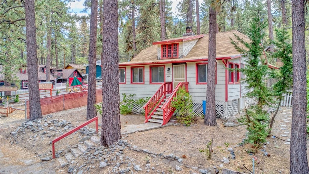 Classic Wrightwood mountain home features 3br, 2.5 bathrooms, newly carpeted downstairs, completely renovated primary bathroom, newly painted and all new appliances. Other features include fireplace, sun room in entry, fully fenced backyard with shed. Upstairs charming last century knotty pine with spacious family room and half bath.
