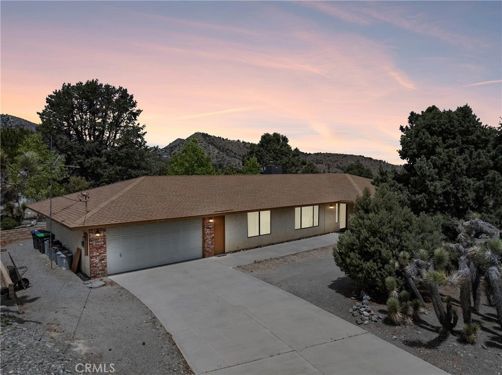 Tucked in nicely in the foothills of the Eastern San Gabriel mountains and just 2 miles from the heart of Wrightwood and 12 minutes to Mountain High Ski Resort, sits the single story property that sits on 2.31 acres and is off paved Scrub Oak Dr. in picturesque Wrightwood!! Featuring 2,169 square feet with 3 bedrooms, 2 and a half baths and a neat floor plan, this ranch style home offers a nice size primary bedroom with en suite dual vanity bathroom, a large living room with room to roam, wood burning stove for those chilly nights and direct slider access to the backyard. Two other nice sized bedrooms and full guest bath, large den/family room which you greets you upon entry, with dedicated dining room area as well for family dinners and get togethers! The functional kitchen features a large eat in breakfast counter, perfect for the morning routine, ample cupboard space and opens to the living room for a cozy feel. Outdoor space is vast, with a perfect covered rear concrete patio off the slider, a meticulously manicured yard, neatly placed rocks and walkways, irrigation system in the backyard, storage shed, variety of trees and views to the surrounding hillside. Oh, and lets talk parking...A two car garage with concrete driveway and direct access to the house, RV access, large horseshoe driveway as well for more cars or trailers. Home has a newer AC and roof replaced within the last three years!! Ample sized laundry room at garage access which doubles as your mud room is convenient as well, and zoned for horses! Award winning Snowline School District for the kids! Come check out what rural living is all about, with easy commuting and access options most Mountain communities can't offer in beautiful Wrightwood!