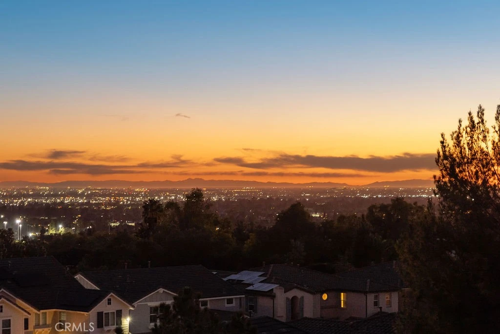 Stunning, unobstructed panoramic views provide the backdrop to this lovely home ideally located within The Preserve community by Toll Brothers in Vista Del Verde. Upon entry you will be greeted with a welcoming neutral palette that includes creamy white walls, brand new LVT flooring, and warm wood accents. Enjoy the modern great room living space inclusive of a large kitchen with granite countertops, center island, stainless steel appliances and large walk in pantry all open to the adjoining dining area and living room that boasts a warming fireplace, media niche, access to the rear grounds and amazing sit down views! A highly desired main floor bedroom with full bath accompanies the lower level living space. Upstairs the primary suite takes center stage with its expansive bathroom and closet space in addition to an oversized bedroom with private balcony to enjoy endless views from the mountains to the sea. Two additional large sized secondary bedrooms, full hall bath with dual vanities and convenient upper level laundry room complete the upstairs. The outdoors is a perfect retreat to sit and watch the world go by or be in awe of the sunset and sparkling city lights, accented by a partially sun soaked patio and covered dining area adorned with attractive pavers for easy care maintenance. Fully finished garage, large extended driveway and quaint front porch are additional special touches. Located moments from Black Gold Golf Club, scenic trails, Yorba Linda Town Center with shopping and restaurants, and top-rated schools ... this home offers the location, amenities and views you have been waiting for.