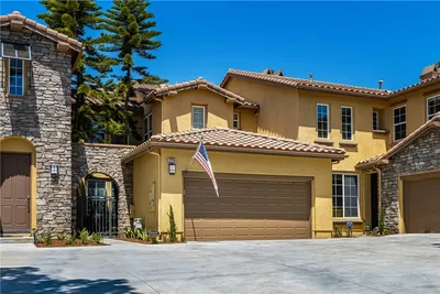 Tucked into the quiet hillside of Yorba Linda is the Palisades in Vista Del Verde, 18689 Clubhouse Drive offers the kind of everyday ease that makes Yorba Linda feel special. Mornings can start with a walk through quiet, well kept neighborhood lanes, then a quick stop at Black Gold Golf Club just up the road. Weekends can mean pool time, a spa soak, a workout at the community gym, or an easy afternoon at the playground while neighbors catch up. You will also be the talk of the town with the approximately 50' x 24' garage which could fit up to 6 cars. Yes. Up to six cars (four larger cars and a golf cart). Inside, this 2,303 square foot end-unit Taylor Morrison luxury townhome lives bright and open and includes peek-a-boo city light views. The gourmet kitchen anchors the main level with a grand center island, granite counters, a designer backsplash, 5 burner cooktop, and stainless steel appliances. The kitchen flows into the dining area and family room, where a cozy fireplace sets the tone for relaxed nights in. Step outside and you will love the privacy of your own backyard, this is a desirable end unit with low maintenance living in mind. There is also a sitting balcony off the kitchen, perfect for coffee, sunset views, or a quiet moment between errands. Upstairs, the primary suite feels like a retreat, with a large walk in closet and a beautifully upgraded bath featuring dual quartz vanities, a soaking tub, and a glass enclosed shower. Two additional spacious bedrooms, a full bath, and a laundry room with extra storage and a utility sink complete the upper level. The upgrades continue with custom Hunter Douglas electric blinds, upgraded flooring, recessed lighting, a tankless water heater, and of course the rare 50' x 24' garage with epoxy flooring, water softener and tankless water heater. Beyond the front door, life in Vista Del Verde is built around comfort and confidence. The Palisades offers resort style amenities including a pool, spa, clubhouse, BBQ area, fitness and weight room, and a playground. You are also minutes from local trails, parks, and the new Downtown Yorba Linda Entertainment Center for dining, movies, and community events. Add in the calm, residential feel Yorba Linda is known for, along with highly regarded schools nearby, and you have a home that supports a full lifestyle, friendships, family and memories. 18689 Clubhouse Dr is the one you will want to experience in person.