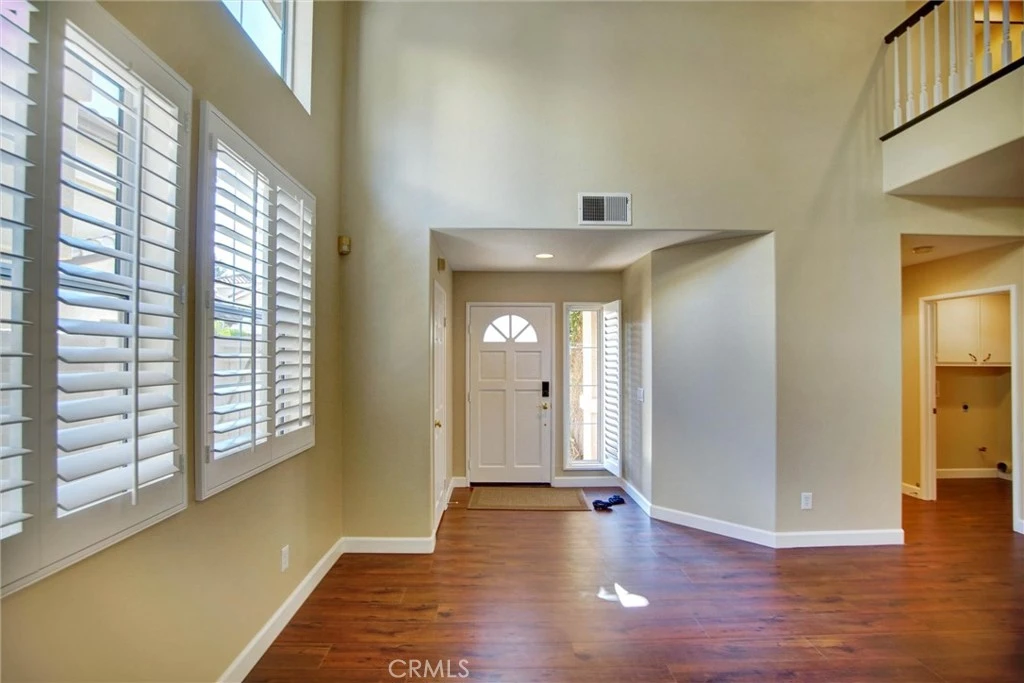 Ready for rent. This home is located in the La Terraza community on the east side of Yorba Linda. The property features a two-story layout with high ceilings and natural light throughout. The living and dining spaces are open and connected by a double-sided fireplace that also opens to the family room. The kitchen includes granite countertops, a peninsula, and a walk-in pantry. Upstairs, the primary bedroom includes a large closet, dual sinks, soaking tub, and a separate walk-in shower. Three additional bedrooms are located upstairs, along with a full hallway bathroom. Recent updates include new luxury vinyl plank (LVP) flooring upstairs and fresh interior paint throughout the home. The backyard features newly repaved low-maintenance concrete, a designated planting area, and a freshly painted pergola. The patio is gas ready for a BBQ. Additional features include an attached 2-car garage with direct access. Community amenities include 2 pools, tennis courts, and basketball courts. The home is located near Bryant Ranch Park/ Elementary, food, shopping, and Placentia/ Yorba Linda schools.