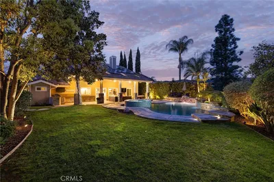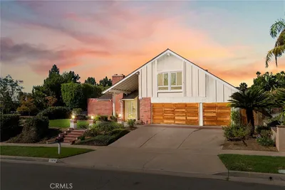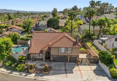 This 5 bed, 3 bath home with a 2 bed 1 bath ADU and RV parking on an oversized lot with solar panels is perfect for multigenerational living and is in one of Yorba Linda’s most desirable neighborhoods! Main lives like a single level with the primary suite, two bedrooms/one bath on the first floor and two beds/one bath upstairs. The detached ADU offers potential for income, and the RV driveway has electricity and dump station. For those warm Summer nights, the extended roof patio spans the front of the home and your lawn will always look mowed with the manicured artificial turf. The RV gate is 17 ft wide and the driveway is over 60ft long and 18ft wide from eves to wall along side the 3 car garage. Inside, views to the backyard, vaulted ceilings, and a warm wood floor greet you. The classic kitchen is beautifully appointed with top-of-the-line appliances including a Sub Zero refrigerator, Dacor 5 burner stove, Miele double ovens and warming drawer, Kitchenaide stainless dishwasher and fridge with panel doors matching the cherry cabinets with beading. A Farmhouse sink and solid maple pullout drawers including a spice rack, and two lazy Susans with many soft close drawers make this kitchen as functional as it is beautiful. The spacious island showcases Splendor granite, a separate sink and seating for three. The ample cabinetry also offers a coffee cabinet and Splendor backsplash diamond cut outs. An abundance of lighting tops it off. The large dining area can accommodate a 12 ft table and has fireplace. Everyone will come hang out in the huge room with the stone covered fireplace and hearth. The windows and the sliding glass door to the outdoor kitchen bring lots of light. Built in cabinets and desk span one whole wall. Step out to the patio where you'll find an outdoor kitchen that was recently constructed with concrete counters, a Blaze BBQ, 2 burner stove, sink and garbage disposal. Green grass, avocado trees, and the ADU are surrounded by concrete and slump stone walls. The 920 foot ADU hosts 2 bedrooms and 1 bath with kitchen overlooking a very spacious gathering area, and outside is a gated artificial turf yard. Step back into the primary room doors in the main house to find a spacious room with a wall of closets, walk in shower in the primary bath and down the hall 2 bedrooms with wood floors and the hall bath with tub. Up stairs you’ll find 2 more bedrooms and a hall bath with a shower. Shopping, theatre, Yorba Linda lakebed and great schools.