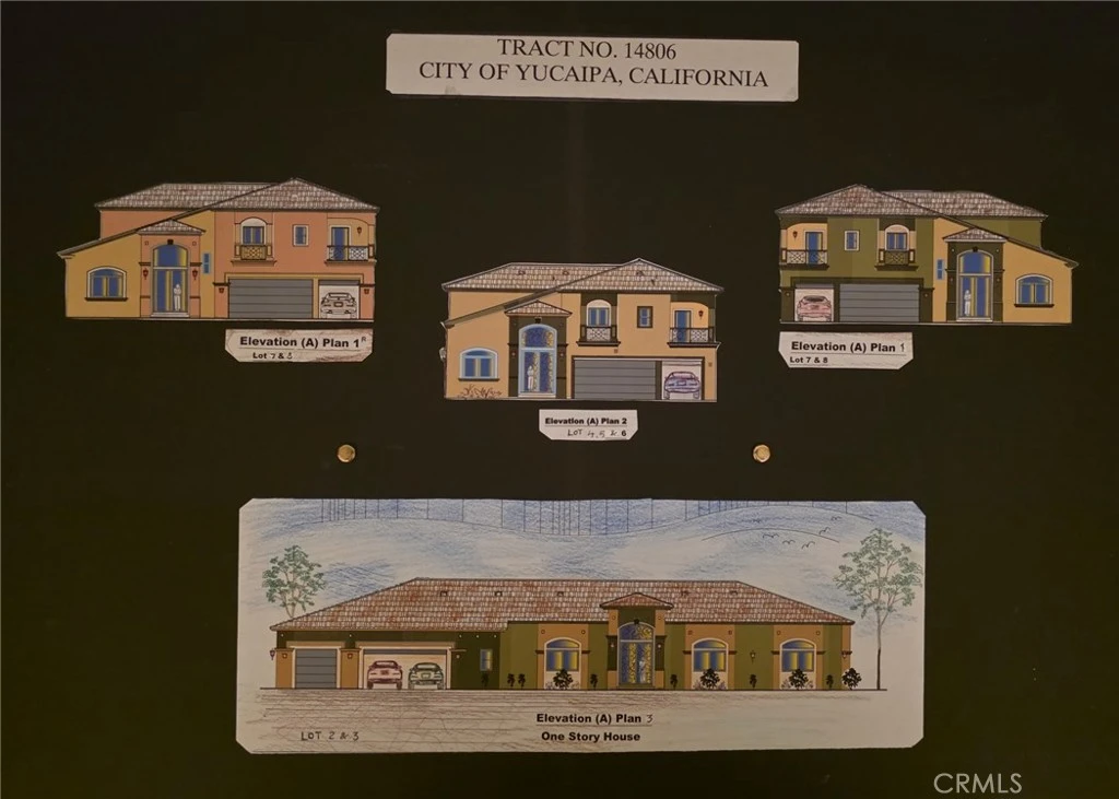 5 Lots on a Cul-De-Sac in a beautiful area in Yucaipa. Lot sizes vary between approximately 20,000 and 29,000 Sq Ft. The 5 lots out of 7 total in the tract map, 2 of them have newly built luxury homes already. Street and curbs are ready. They come with: Approved Architectural Master Plan for the 7 lots with architectural plans for the 7 homes. Permits were pulled only for 2 lots that been built already including all their fees. Plans are two story houses on 3 lots and one story on 2 lots. Soil report done for the 7 lots. Approved precise grading plan for the 7 lots. Two fire hydrants installed with approved pressure test. Storm drain line with its inlet and outlet to a big creek. Utilities: sewer line through the haul property with manholes and laterals to each lot, gas line ready to each lot, water line is ready on the curb of each lot, power; two transformers are already installed to serve three lots and the two existing homes and one more to be installed for the other 2 lots with approved plan from Edison Co. Also their underground conduits and its pad are ready and tested.