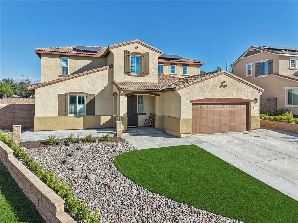 $10,000 Forgivable Grant Available! Craving a home with designer finishes and future-ready upgrades? Set on a beautifully manicured lot, this stunning 4-bedroom, 3-bath Yucaipa residence shines like new with abundant natural light, stylish shutters, and an inviting open concept design. The contemporary kitchen is a showstopper, featuring recessed lighting, bespoke cabinetry, custom countertops, stainless steel appliances, a large center island, and a walk-in pantry perfect for both entertaining and everyday living. A convenient main-level guest bedroom and full bath offer flexibility for visitors or multigenerational living. Upstairs, the spacious primary retreat impresses with dual walk-in closets and a serene ensuite bath. A versatile office easily converts into a fifth bedroom or bonus room to suit your lifestyle. The laundry room with sink and direct access to the attached 2-car garage adds everyday convenience. Step outside to a low-maintenance yard and expansive patio, already prepped for your dream outdoor kitchen, pool, or spa. Additional highlights include a concrete retaining wall, solar panels, and a water softener system. Ideally located near Yucaipa Regional Park, local shopping, dining, and quick access to the I-10 Freeway—this tranquil haven is ready to welcome you home.