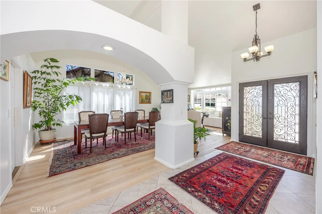 Must see this stunning single story home on just over half an acre on a quiet cul-de-sac with amazing views of the Yucaipa Valley and gorgeous Big Bear Mountain. Included is a 2 car attached garage, and an additional 24X28 foot 672 sq.ft. detached garage that can easily be converted into an ADU. The extra wide driveway allows for RV and/or boat parking as well as several vehicles. Once inside the custom front doors you will be amazed at the large tile flooring on a diagonal pattern, as well a low maintenance laminate flooring. The formal dining and living rooms affords the extra space for the larger gatherings, and the large family room off the kitchen boasts a huge used brick fireplace with custom mantle. The large kitchen has upgraded cabinets with quartz countertops and even a large stained glass garden window. This home comes with 2 remodeled master suites complete with their own private bathrooms. Step outside the sliding door to a huge backyard with a pebble tech custom pool with a large lounging step that holds 2 umbrellas as well as a separate spa. With no neighbors directly behind you there is a beautiful view of the valley for those evenings in the spa. Did we mention the 35 fully paid off solar panels providing for lower electric bills? The area below the backyard within the flood control zone allows you to stable your horses year round. Hurry as this one won’t last long.