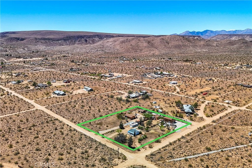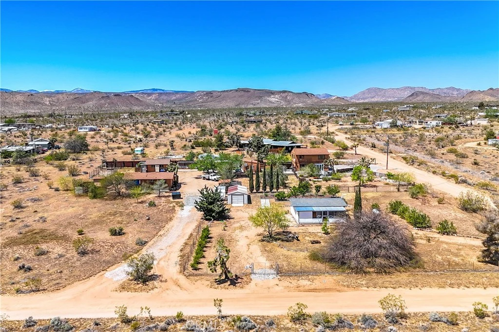 Don't miss out on this very special property. Very affordable multi home sale for investment, extended family or it might make for a great retreat center. Priced to sell and awaiting your personal touches. Sprawling across just over two well groomed acres boasting absolutely gorgeous grounds, tons of infrastructure and really beautiful panoramic views from it's hillside location. Three single family homes, as well as an additional large detached studio used by the properties caretaker, a detached smaller studio used as a gym, a detached garage and a detached laundry room. This property has a bit of everything. There is a genuine midcentury home ready to move into with one bedroom, full bath and enclosed porch. The midcentury home is on it's own utilities with separate meters from the rest of the homes for ease of creating a separate rental if desired. There is a clean studio apartment with exhibition kitchen and full bath, private fenced yard and great entertainers patio with partial outdoor kitchen amenities. The primary home built in 1989 is a 1500 plus square foot rare two story, three bedroom, two full bath fixer with great views from the second floor. The outdoor spaces on the home are amazing with many relaxing sitting areas, mature fruit trees including an orchard, cacti and Joshua Trees, enclosed garden beds, many sheds of various size, chicken coops, enclosed yards for livestock and desirable views of Goat Mountain and Pipes Canyon. The location is just over a 20 minute drive to the main entrance of the Joshua Tree National Park and also shorter distances to Giant Rock, The Integratron and Pioneertown. Come take a look and make this wondrous location yours and live life under the clear desert skies and beautiful dark star filled desert nights.