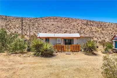 Tucked away on a peaceful 2.5-acre corner lot in Flamingo Heights, this beautifully remodeled midcentury studio cabin blends rustic charm with modern comfort. Fully furnished and thoughtfully designed, the open living space features a cozy lounge area, bedroom nook, updated kitchen, and dining corner--plus a full bathroom and convenient laundry closet with a stackable washer and dryer. Large windows fill the interior with natural light and frame stunning desert vistas. Step outside to enjoy shaded seating areas, a brand new spacious hot tub, and panoramic views that transform into an incredible blanket of stars at night. With stylish furnishings and finishes, and thoughtful upgrades throughout, this charming retreat was granted SFR status in 2023 and offers the perfect balance of tranquility and convenience-- private and secluded but just a short drive from Pioneertown, Joshua Tree, and local favorites like La Copine, Copper Room, and Tiny Pony.
