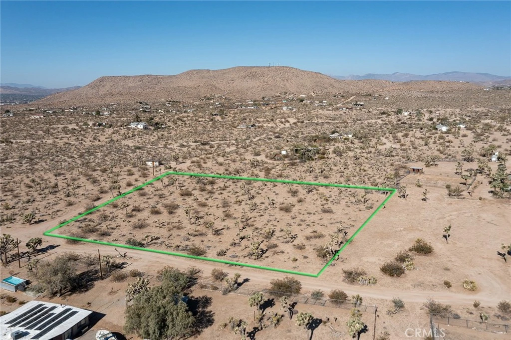 2-ACRE PARCEL, located in desirable, rural part of Yucca Valley, with views to the south of the mountain ridgeline in Joshua Tree National Park. Plans have been developed for this property have been developed to code, but at not presently approved. Water & Electricity nearby. Great location. Official street address has already been assigned to parcel to help expedite development and approval of building plans. NOTE: Green lines demarcating boundaries in pictures are approximate. APN: 0598-061-20