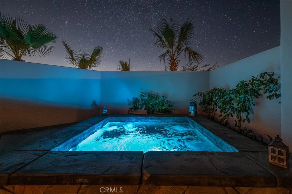 For the buyer who refuses to settle, welcome to this exceptional Yucca Valley estate. Set on a combined corner parcel of over 1 acre with sweeping desert views, this custom built home is thoughtfully integrated into natural rock formations, blending modern design with the desert’s raw beauty. Major added value: the seller acquired the adjacent lot complete with an existing driveway and graded pad and combined it with the main parcel, offering excellent potential for a future ADU, guest house, or additional garage/workshop (buyer to verify). The home features a primary suite, two additional en suite bedrooms, plus a versatile bonus bedroom/office. Expansive picture windows flood the home with natural light and frame dramatic desert and mountain views. The high end kitchen includes matching KitchenAid appliances, a six-burner commercial gas cooktop, and pot filler. Notable features include all steel construction, zoned heated polished concrete floors, dual-zoned AC with electric heat, two wood burning fireplaces, wood ceilings, dedicated laundry area, motorized window coverings with blackout shades in bedrooms, solar window tint, and built-in closet systems. Additional highlights include a paid, overbuilt solar system, whole-house surge protection, and an AC/heated garage with industrial storage racks. Enjoy spa like relaxation in the private sauna room. The exterior showcases landscape lighting, drip irrigation, mature trees, and a storage shed with matching garage door. Architectural lighting creates stunning nighttime ambiance. Designed for both privacy and entertaining, the grounds feature a Jacuzzi spa with natural rock waterfall, expansive gathering areas, and corner lot positioning. This rare property offers luxury, craftsmanship, energy efficiency, and room to expand,an exceptional opportunity in the High Desert.