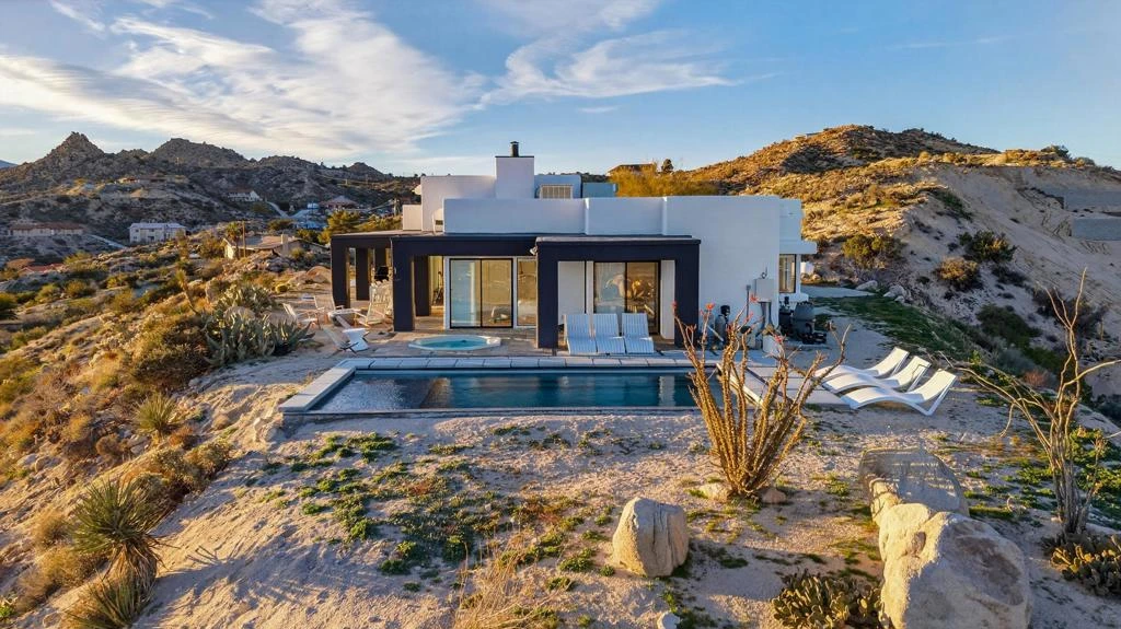 A private hilltop retreat in Western Hills, elevated high above Yucca Valley with sweeping, uninterrupted views across the valley toward Joshua Tree National Park. Set on 1.22 acres at the end of a quiet cul-de-sac, this four-bedroom, two-bath home offers exceptional privacy, scale, and a true sense of separation from the world below.Inside, soaring ceilings and expansive windows fill the home with natural light and frame views in every direction. The architecture is open and comfortable, designed to let the landscape take center stage as the desert light shifts throughout the day. Indoor and outdoor living flow effortlessly, creating an experience that feels both relaxed and elevated.Outside, the heated pool positioned along a dramatic edge anchors the setting, while a separate in-ground spa offers a quiet place to unwind. The elevation, silence, and wide-open skies make the outdoor spaces ideal for long afternoons in the sun, sunset swims, and nights spent stargazing in complete privacy.The elevated site maximizes views, tranquility, and versatility, making this an exceptional full-time residence, weekend escape, or high-performing short-term rental with meaningful upside. Ideally located just minutes from Pioneertown and Joshua Tree National Park, and within easy reach of Palm Springs, this is a rare opportunity to own a truly special hilltop property in one of Yucca Valley's most sought-after neighborhoods, brought to market with intention and reach.