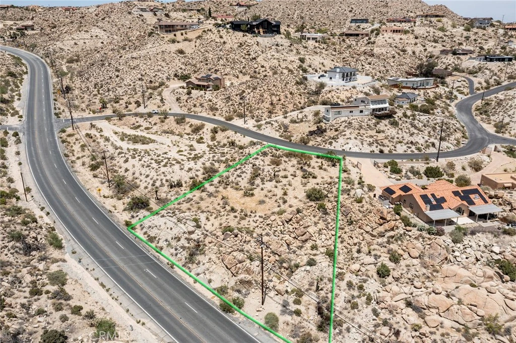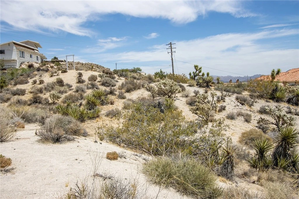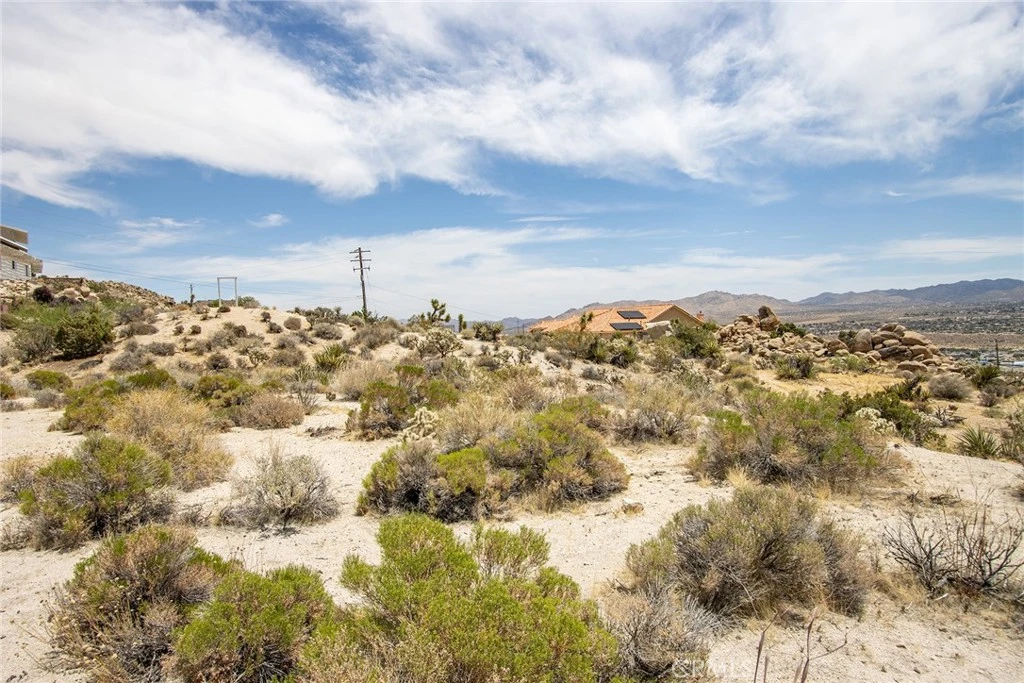 WESTERN HILLS PARCEL: Overlooking Yucca Valley, with utilities (water & electric) in the street. Prestigious hillside location. Convenient to dining and shopping. Property already had an assigned street number. Note: Green lines demarcating boundaries in pictures are an approximate representation of lot lines.