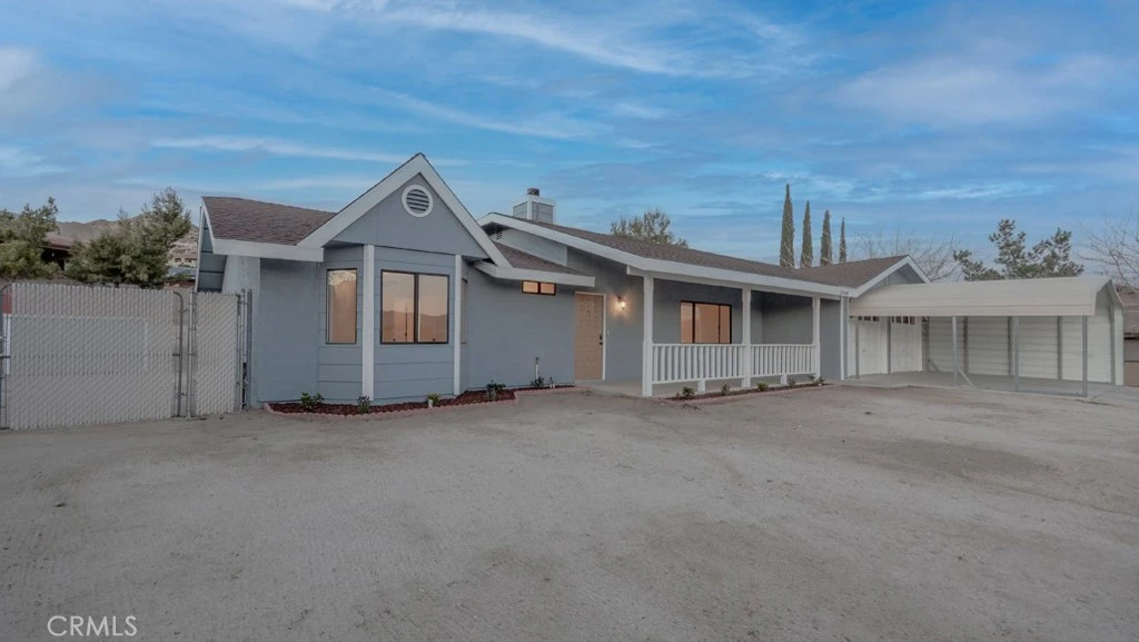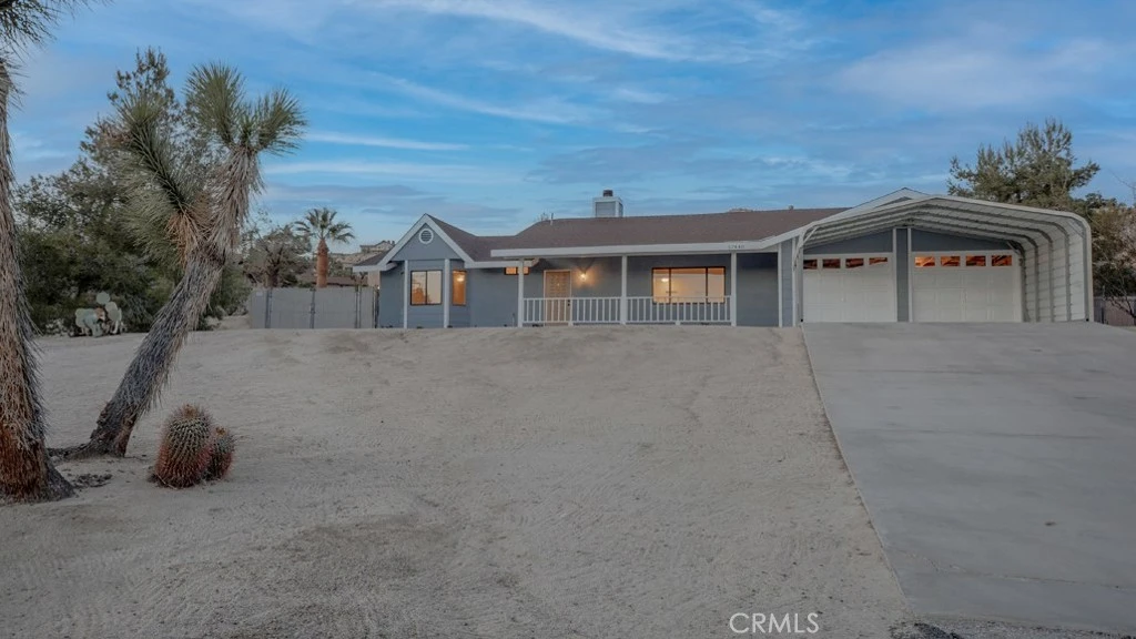 Gorgeous 3 Bedroom, 2 Bathroom Home with Views in One of the Most Coveted Areas of the Hi-Desert. Located on a cul-de-sac in the highly sought-after Western Hills Estates area of Yucca Valley and renovated with beautiful finishes, this wonderful home is sure to please. As you drive through the neighborhood, you'll realize why this area is so popular, passing by well-cared-for homes surrounded by stunning views of boulders and mountains in the background. Pulling into the ½-acre lot, you’ll notice a chic blue façade with white trim, a double garage door, and mature Joshua trees. A covered patio welcomes you as you stop to admire the phenomenal views of the cityscapes along with the majestic mountains. Stepping through the front door, you’ll find a character-driven floor plan featuring a stunning hand-painted mural, stylish wood laminate flooring, a tasteful color scheme, decorative shelving accents, and a beautiful fireplace that ties it all together. Designed with entertaining in mind, the upgraded and fully equipped kitchen is spacious, inviting, and stylish. It comes equipped with quartz countertops, tasteful kitchen cabinets, and stainless steel oven and dishwasher! Just off the kitchen is the large dining room, which could easily be utilized as a den. Each guest bedroom has plenty of space, and the guest bath features wood tile flooring, a beautiful vanity, a full bathtub/shower, and a stylish mirror! Entering the large primary bedroom, you'll find a walk-in closet, a bay window, and a private bathroom featuring wood tile flooring, a chic vanity, a stylish mirror, and a full bathtub/shower! Can it get any better? Yes! The backyard has been transformed into a private sanctuary outfitted with privacy fencing, a covered patio, a NEW 20x30 cabana, and a NEW jacuzzi, making this space the perfect spot to host gatherings or enjoy all to yourself! Additional features include an upgraded electrical panel to 200A, a new 4-ton electric HVAC system, dual-pane windows, and more! Call today before this one is gone!