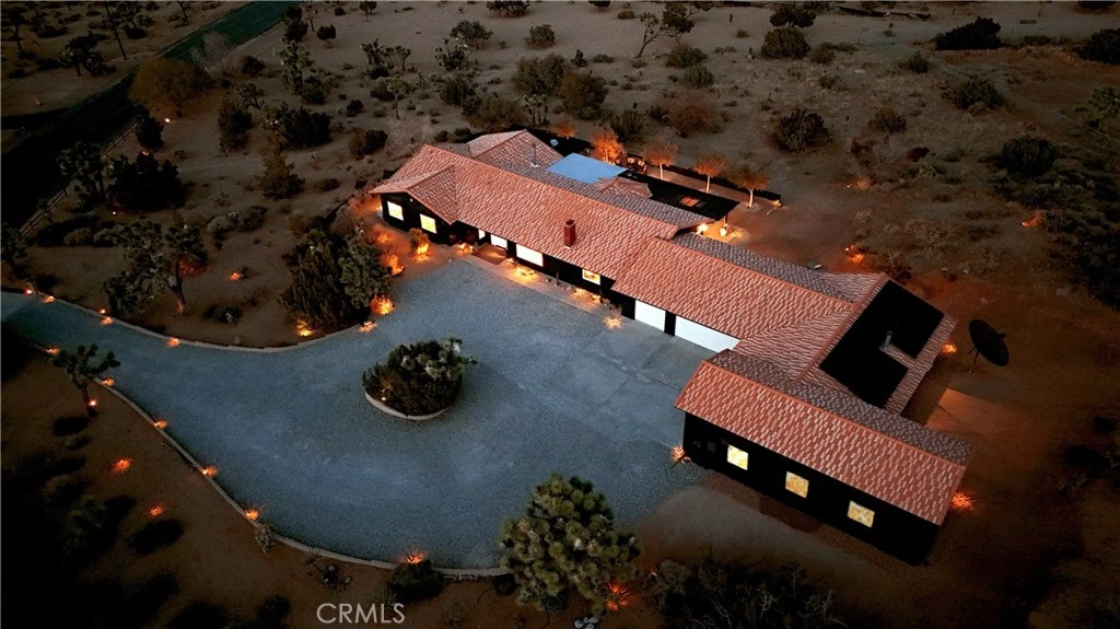 A rare offering in the private enclave of Carmelita Circle, this 4-bedroom, 4-bathroom estate sits on 3.16 view-filled acres backing the rugged ridgelines of Joshua Tree National Park. With scale, privacy, and solar-powered efficiency, this home is equal parts desert luxury and future-ready retreat. Inside, the layout flows with purpose—multiple living areas, an office, and mother in law suit with wet bar and bathroom anchor the space, while the double-island kitchen invites gatherings large and small. High-end custom finishes—Venetian plaster, Marmorino, and leather-textured walls—bring refined warmth throughout. A solar lease offsets the full electric bill (approx. $200/month), and the expansive lot offers room for an in-ground pool, pickleball court, or even the flexibility to create a horse property. No fencing means clean sightlines and endless potential. Additional features include a three-car garage, a bonus gym/workshop, and an RV garage with hookups. Mature Joshua Trees and olive trees dot the grounds, adding character and depth to the natural landscape. Just minutes from Black Rock Canyon and Machris Park, this is one of Joshua Tree’s most exclusive addresses—where space, style, and setting align.