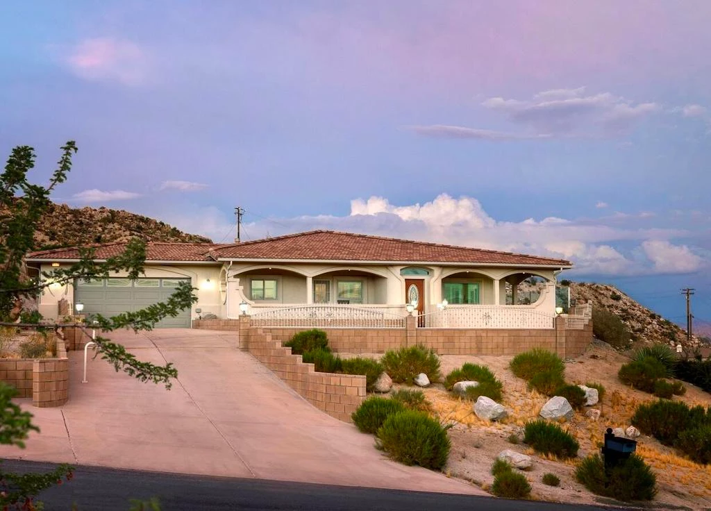 Views, Views Views!! Stunning views from almost every angle of this beautiful well appointed 4 bedroom 3 bath home nestled up against the hills in the desirable Western Hills Estates area of Yucca Valley. It is currently being used as a short term rental and has fabulous income potential. Electric gated drive with plenty of parking. The interior has been meticulously updated with polished concrete floors, new interior paint, abundant natural light, custom kitchen and more. The primary bedroom has 2 walk in closets and it's own laundry a separate laundry room to accommodate guests. The wrap around covered patio provides views from every angle and all rooms have private access to the patio. Central water filtration system, central vacuum, interior and exterior sound system, & outdoor jacuzzi spa. This home features a state-of-the-art solar energy system, offering sustainable and cost-efficient energy. Enjoy reduced utility bills, energy independence, and the opportunity to live more sustainably. This home does not disappoint, is a must see, and it wont last. *Seller will entertain selling it furnished for the right offer.