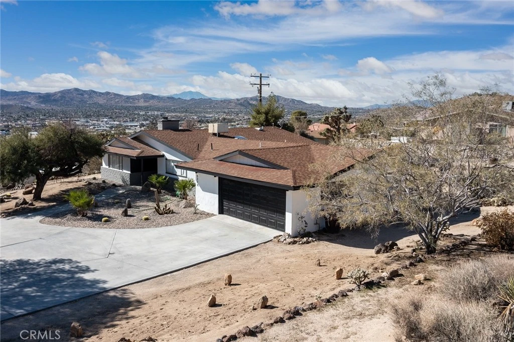 !**Location, Location, Location! Western Hills Estates!**Now for Rent!! Introducing a beautifully remodeled home that's truly one of a kind! Be sure to check out the video above and call for more details. This stunning property offers breathtaking views from every room, including the bedrooms! The home features three bedrooms and two bathrooms, creating inviting spaces perfect for entertaining, relaxing, or spending quality time with family and friends. Enjoy cozy evenings by the wood fireplace and indulge in the hot tub spa. The beautifully landscaped front and backyards provide an ideal setting for entertaining or sipping coffee while taking in the peaceful scenery. With its thoughtful design and attention to detail, this home is simply stunning. The split floor plan ensures privacy, with bedrooms located on each side of the house for a tranquil atmosphere. The modern kitchen boasts upgraded appliances and cabinetry that open into the living room, while the patio offers a perfect spot to catch beautiful sunrises and sunsets. Located approximately 20 miles from Joshua Tree National Park, a destination that attracted nearly three million visitors in 2019, all necessary amenities are just minutes away in Yucca Valley......