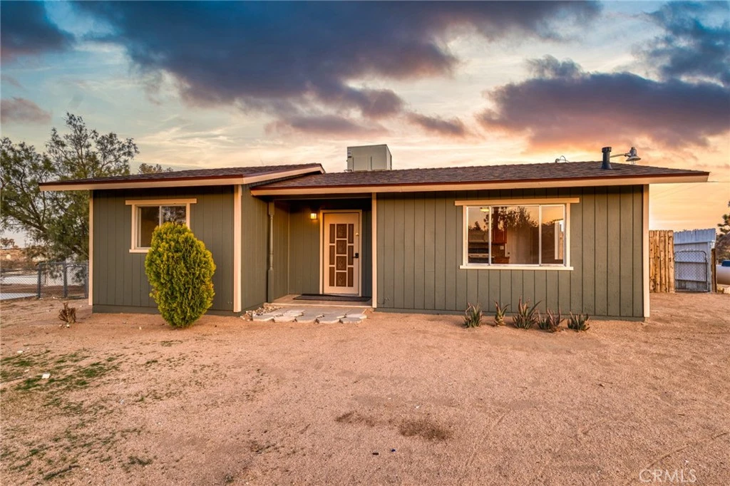 Tucked away in the tranquil East Flamingo Heights area of Yucca Valley, this delightful 544 sq. ft. desert retreat sits on 2.4 acres of breathtaking landscape, offering panoramic views of the rugged mountains and sprawling desert. Most of the property is fully fenced, with an additional smaller fenced yard that adds versatility and charm. Inside, the open-concept kitchen and living area exude warmth and character, featuring rich wood cabinetry, gleaming granite tile countertops, a deep sink, a propane stove, and a dishwasher—all complemented by tiled floors and zoned heating and air conditioning for year-round comfort. The recently remodeled bathroom is a modern oasis, boasting sleek tile floors, a crisp white vanity, a shower/tub combo with a luxurious rainfall showerhead, and a convenient stackable washer and dryer. The bedroom is a serene sanctuary with vaulted ceilings, abundant natural light, its own zoned heating and air system, and a versatile bonus area that could be transformed into a cozy walk-in closet or a charming home office. Step outside to the inviting back patio, shaded by a rustic wood pergola and surrounded by mature trees that create a peaceful outdoor haven. Towards the back of the property, you'll find a separate unfinished structure with its own fenced area—perfect for a flourishing garden or keeping animals. This enchanting property is just a short drive from Joshua Tree National Park, the eclectic charm of Pioneertown, and local culinary gems like La Copine, offering the perfect blend of seclusion and accessibility to the High Desert’s finest attractions.