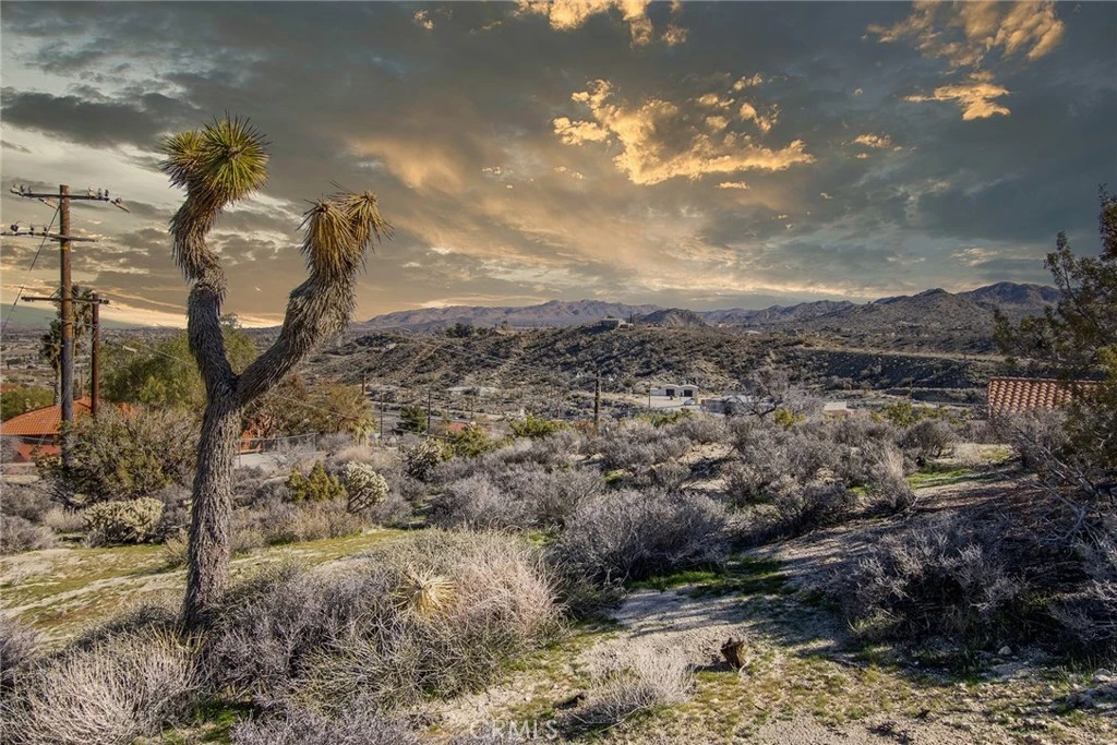 LOCATION, LOCATION SEE THE VIDEO ABOVE!!his lot sits high above the Country Club area with outstanding views of the mountains, city lights, and hills. Beautiful property adorned with Joshua trees, junipers, and native cacti. Surrounded by exquisite high-end homes. A short drive to downtown Joshua Tree and the Joshua Tree National Park entrance. Water in the street and an electric pole near the property line. Come see this desert treasure! Build your home in the Country Club with a direct view of the magnificent Mount San Jacinto. There are many high-end homes in this area. This is a MUST-SEE one-of-a-kind property! Very close to the golf course and a short drive from Palm Springs! If you want to build a dream house call us!